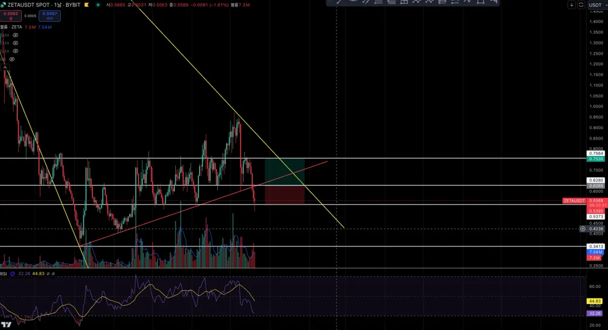 (일봉) 제타체인의 상승 국면 추세를 확대해 보았습니다.