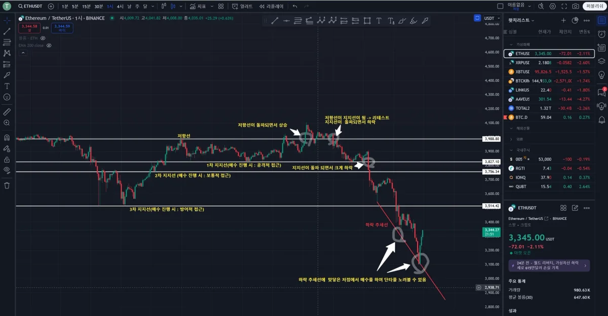 [30일 챌린지 7기 1주차] 이더리움 1시간봉 차트 - 7일 챌린지 커뮤니티