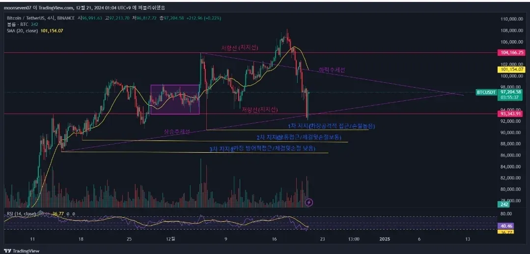 BTCUSDT 4시간봉 챠트에 작도하였습니다. 강의를 듣고 선을 그어보니 신기합니다. 제가 그린 선들이 맞게된건지도 모르겠구요;; 열심히 따라가 보겠습니다. 듣는것과 직접 도구를 사용하여 그려가며 이해하는건 정말 다른것 같습니다. 화이팅 하겠습니다~^^