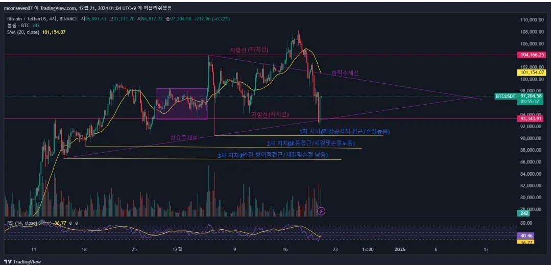 BTCUSDT 4시간봉 챠트에 작도하였습니다.