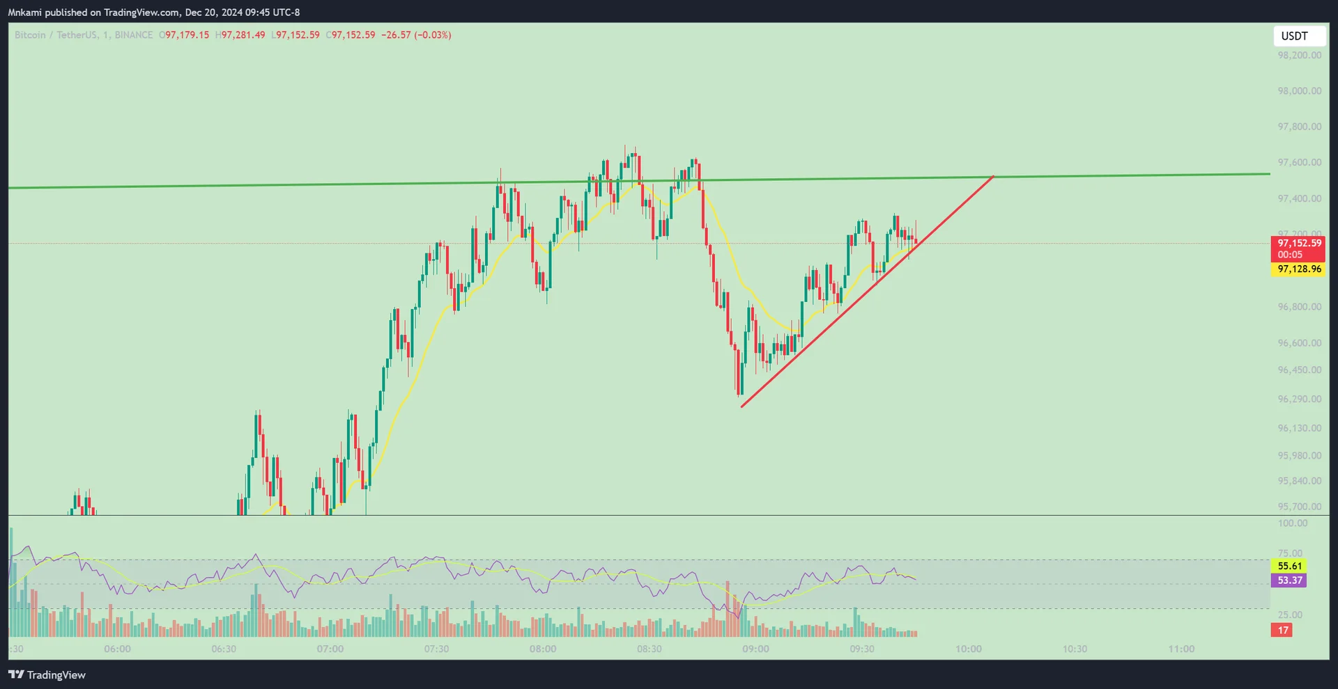 단기적으로 빨간색으로 그은 추세선을 타며 상승하는 모습이 보여 그려보았습니다.