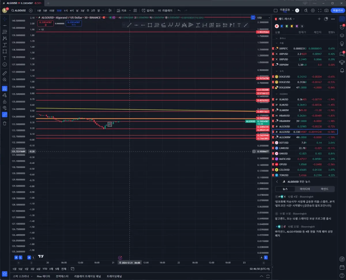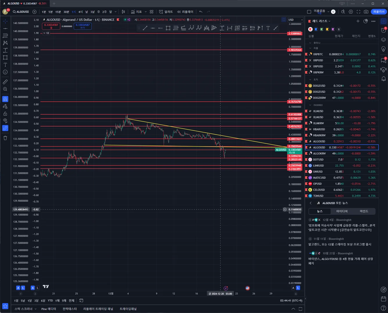 시장의 불확실성 해소와 비트코인 회복, 430원 지지선에서 되돌림 나오는 것을 보고
