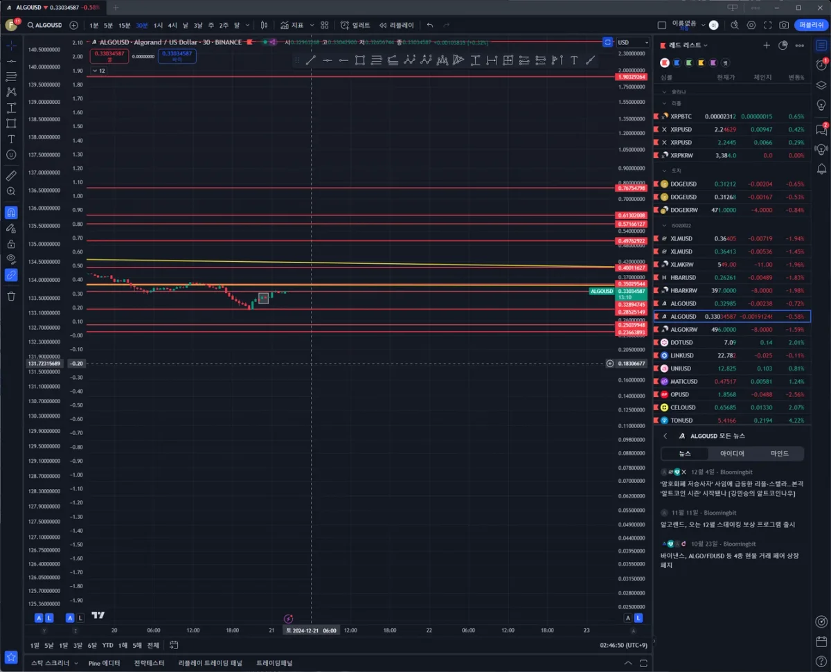 시장의 불확실성 해소와 비트코인 회복, 430원 지지선에서 되돌림 나오는 것을 보고
