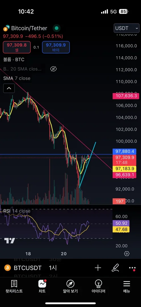 배운 강의 내용대로 작도해봤습니다. 현재 반등구간에서 이탈 없을 시 어샌딩 패턴으로 상방관점 보고 있습니다. 도움이 많이 되고 있습니다.
