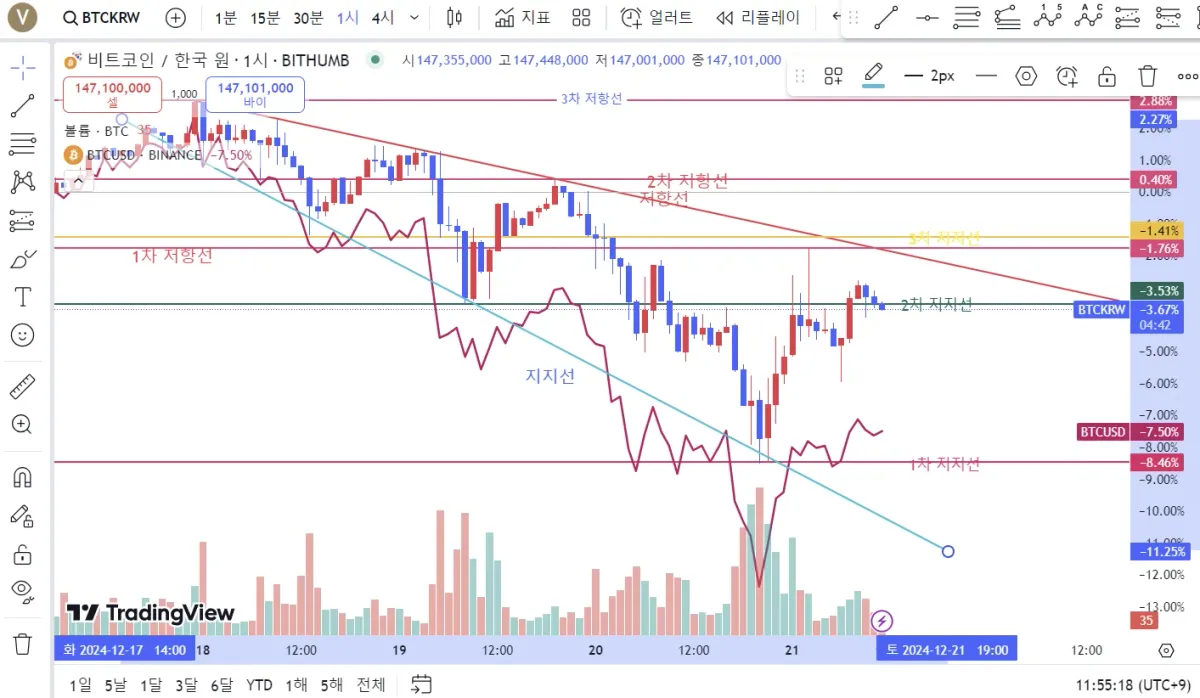 30엘챌린지 7기 비트코인 1시간봉 작도