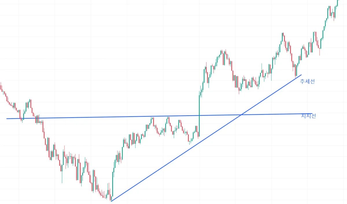 비트코인1분봉입니다 지지선에서 하락하다 지지선을 뚫고 상승하는 추세를 작도해보았습니다