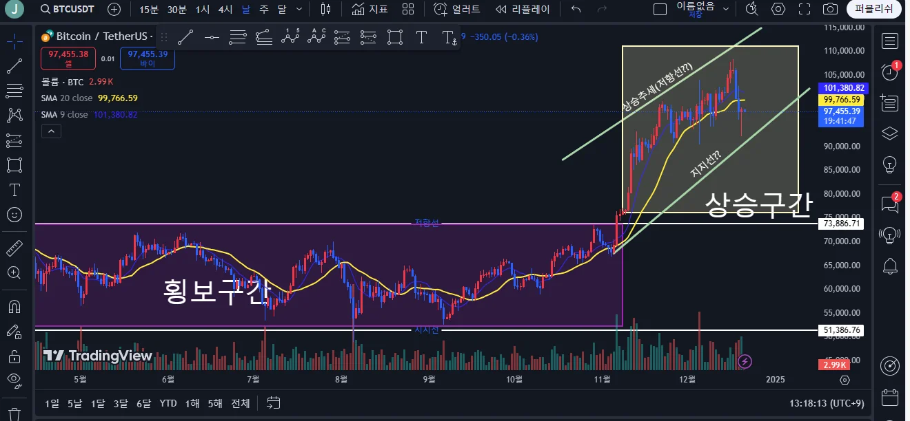강의를 듣고 작도해보았습니다. 횡보구간 이후 상승구간이라고 판단되는데