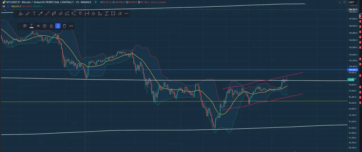 분홍선은 15m 단타관점으로 그은것입니다