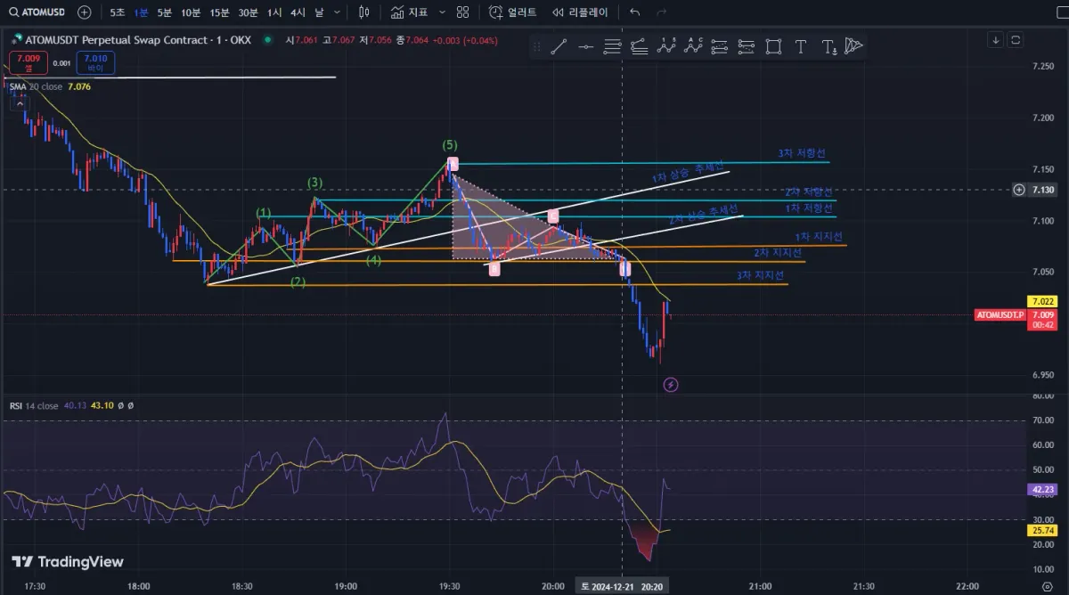 5파? 즉 3차 저항선이 작도될 시점부터 작도를 시작했는데요.
