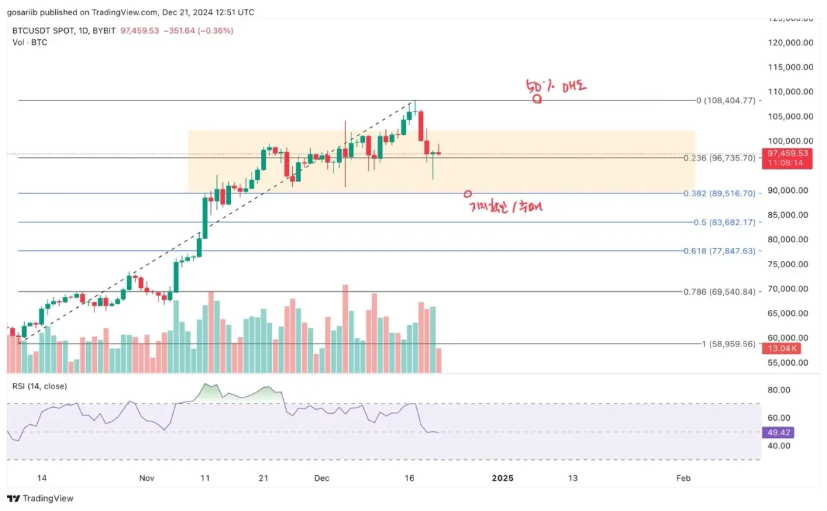 횡보중인 박스권과 피보나치 구간이 일치하여 그부분에서 지지를 보이면 추가 매수, 이탈하면 손절 할 계획.