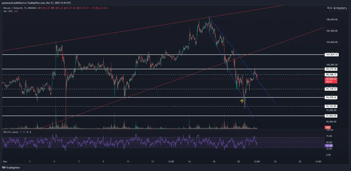 2. rsi가 15분과 30분상 상승다이버예상되는 지점