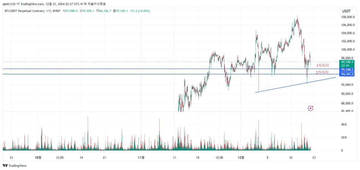 비트코인 1시간 봉으로 그려보았습니다. 처음인지라 잘됫는지는 모르겠습니다.