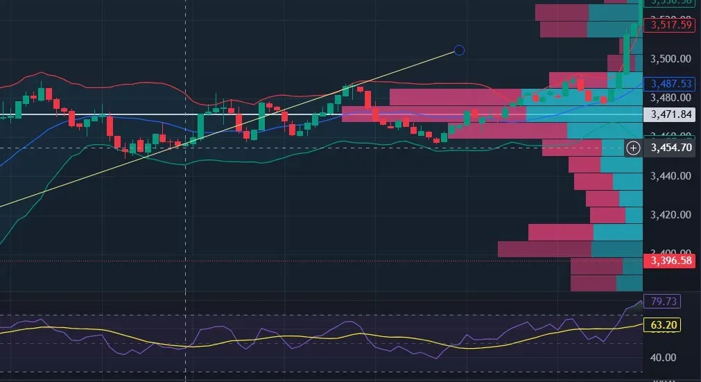 -볼린저 밴드의 레그 및 rsi 과열을 근거로 추가적 상승 예상.