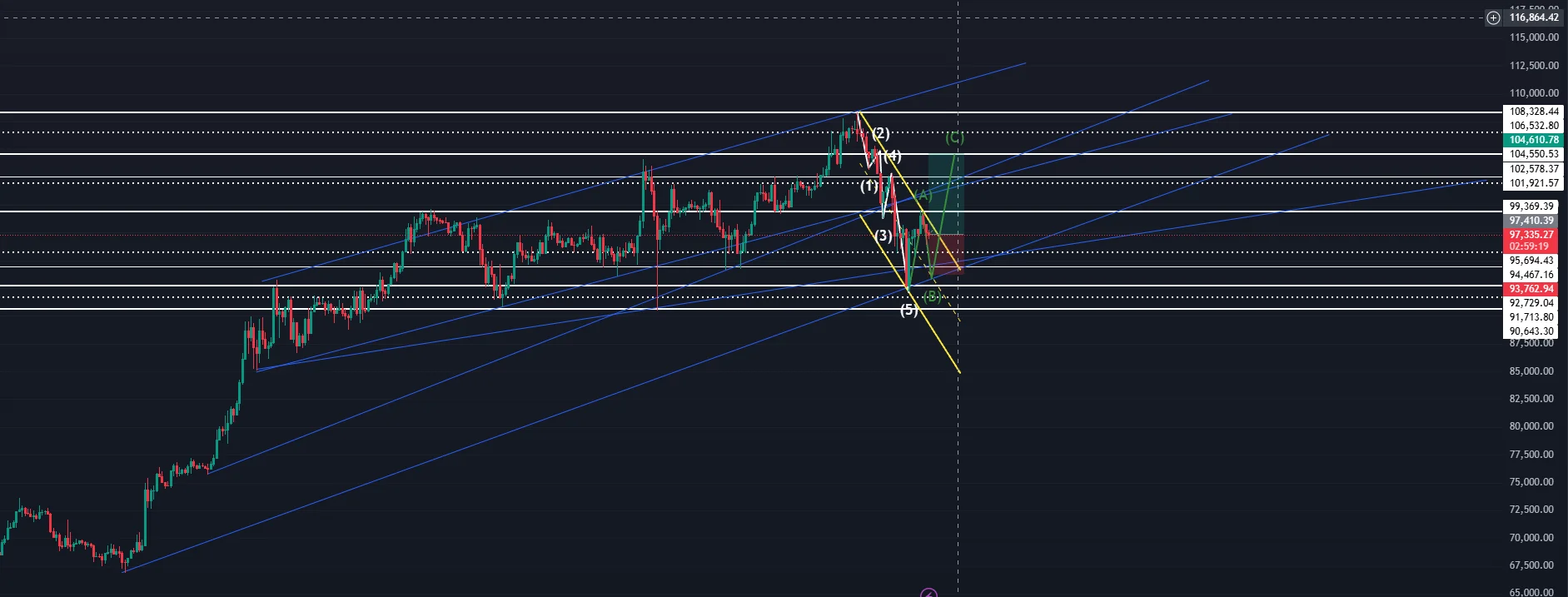 큰 상승추세중의 단기 하락이 끝나간다 생각해 롱 포지션 진입해 보았습니다. 하락 임펄스 5파동이 나왔다고 분석이 되었고 패러럴채널 작도 후 중단채널을 지지 못할시에는 추가하락의 가능성을 보고 스탑로스를 걸어봤습니다. 처음 제대로 해본 분석이라 엉망으로 한것같지만 제 분석에 어떤 오류가 있는지 궁금합니다 ! 그리고 제 눈에는 역헤드앤숄더 패턴도 보이는데 그것도 맞는지 궁금합니다 ! ( 추세선 그리는게 어렵게 느껴져서 잘..그었는지 정말 궁금해요 ..!)