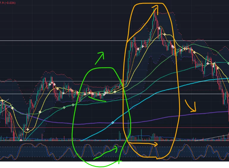 상승 다이버전스와 하락 다이버전스가 연달아 발생하는 것 같다고 생각이 들었는데, 하락 다이버전스는 애매한 것 같습니다.. 비트코인 5분봉 차트입니다