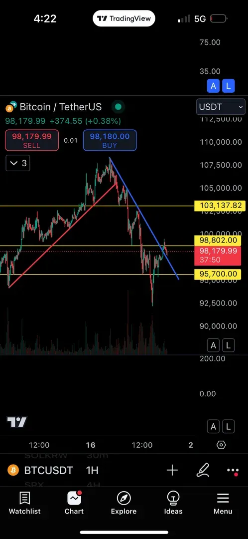 [30일 챌린지 7기 1주차] 비트코인 1시간봉 지지,저항 및 추세선 - 7일 챌린지 커뮤니티