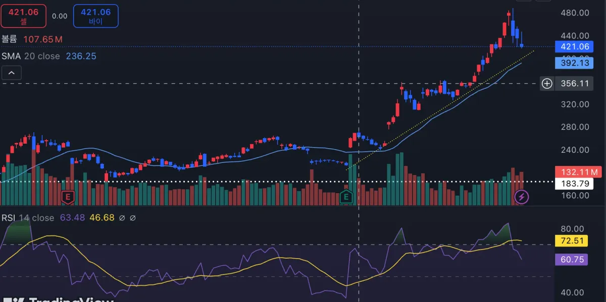 800만원가량 들어가있는 테슬라를 차트 분석해봤습니다.