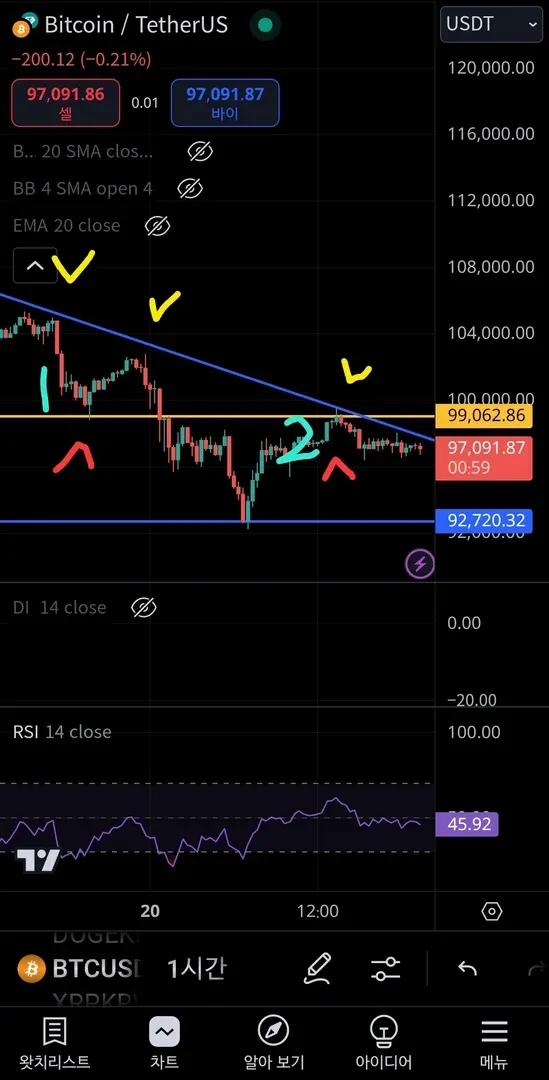 비트코인 1시간 차트입니다
