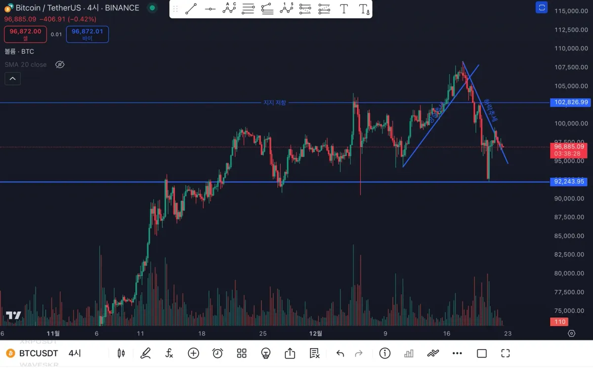 강의를 들을 때는 자신감이 생겼는데 막상 해보니 갈길이 멀구나라는 걸 느꼈습니다. 꾸준히 공부하겠습니다. 제가 작도해본 것은 저점을 찍은 상승 추세와 고점을 찍은 하락 추세이며, 지지, 저항선안에서 횡보를 하고 있는 것으로보아 현재로서는 저항선에 도달 후 다시한번 하락 할거같습니다.