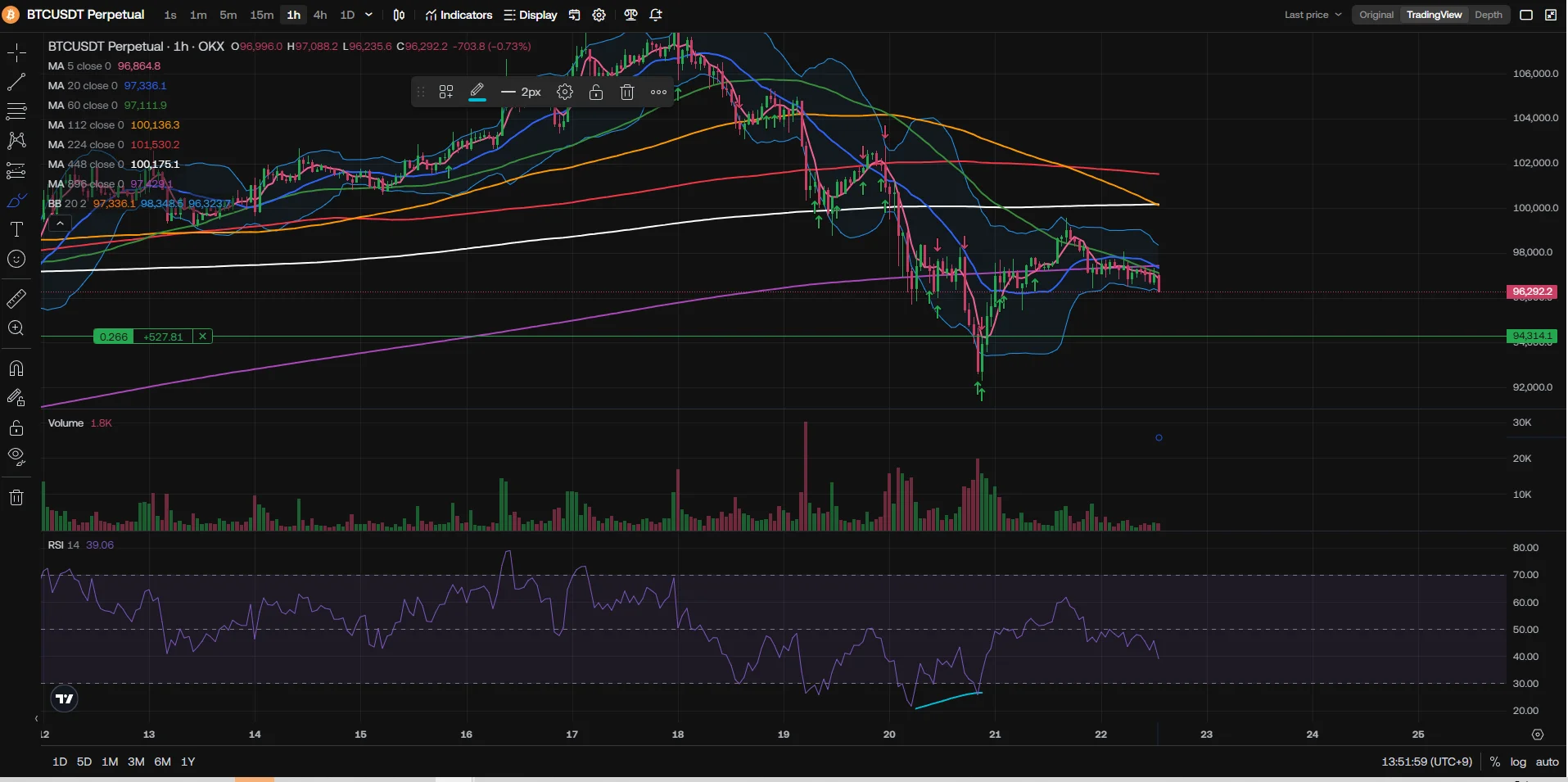 전저점보다 더 낮은 저점이 나왔는데 다이버전스는 상승을 보이고 있어서 롱 진입을 해보았고 수익을 냈습니다.