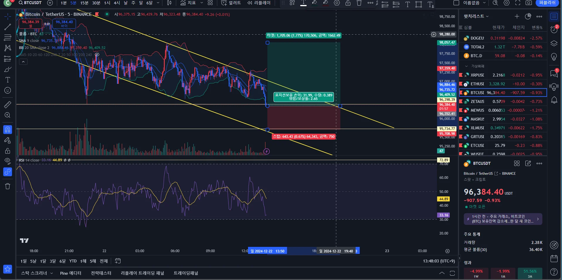 고려했던것은 rsi, 추세선, 볼린저밴드, 패턴, 지지,저항선 등을 참고하여 매매진행 하였습니다만 (피보나치는 완벽이해가 되지 않아 함부로 적응시키기 어려웠습니다.)