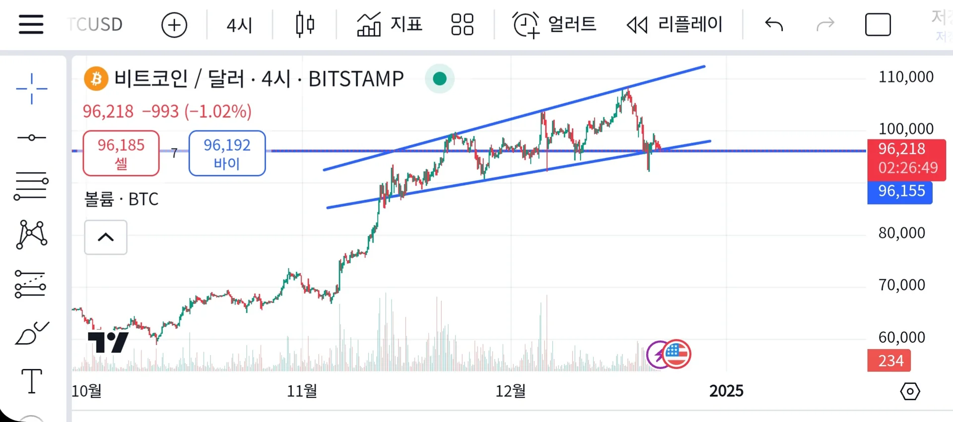 비트코인 4시간봉입니다