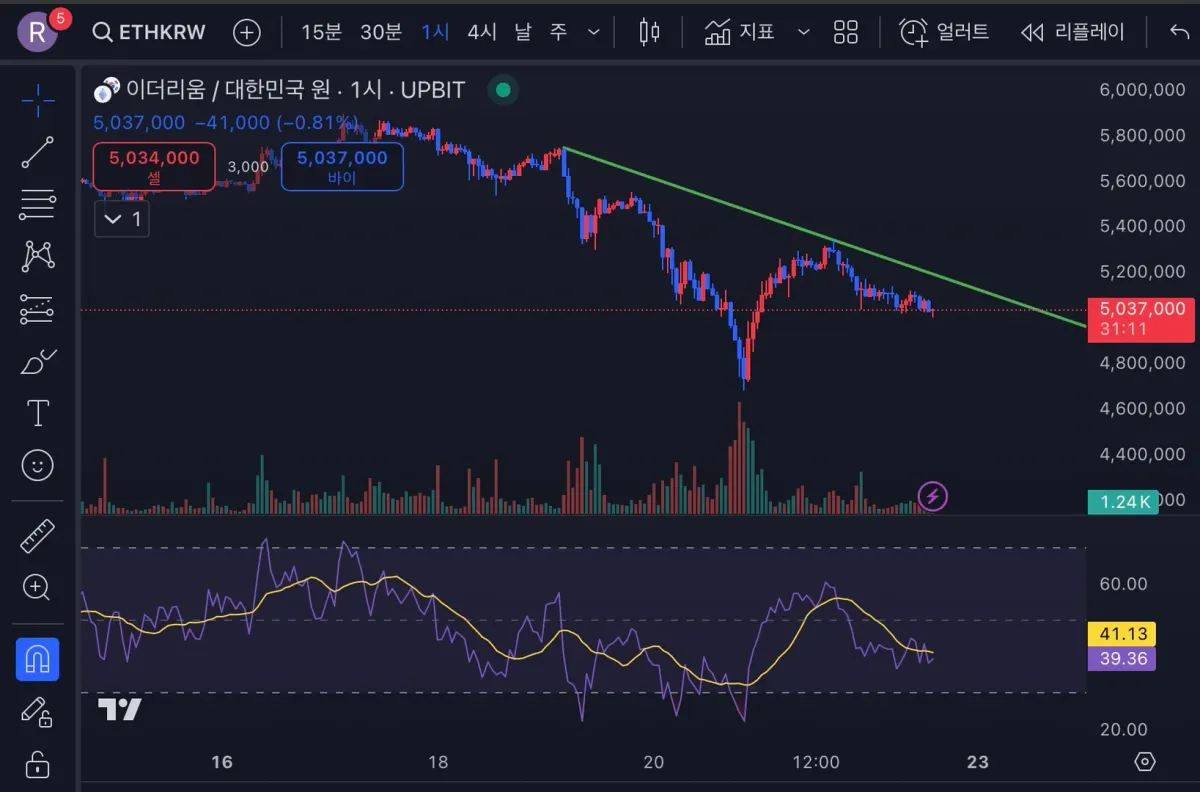 현재 하락 추세선으로 보아 물량 정리도 고려 하며 돈을 잘 지켜보겠습니다.