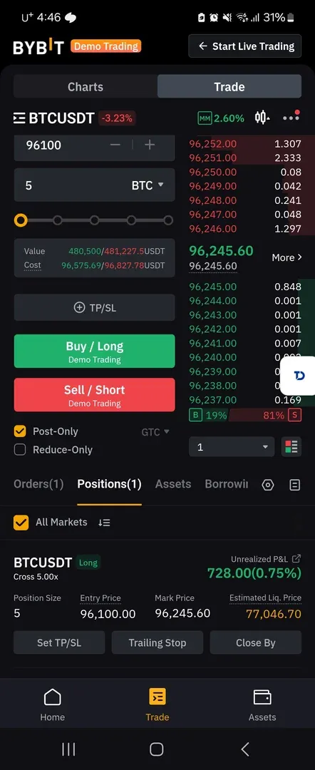 단기 트레이드상 96.3이 좋다고 생각되어 매도 걸어논 상태입니다