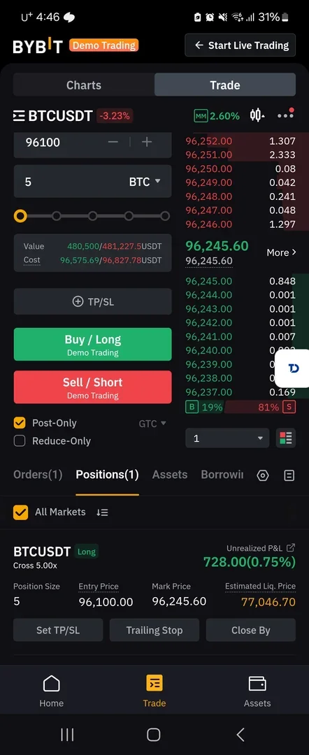 진입이유는 96정도에 단기상 지지라인이 보여서