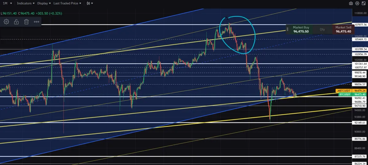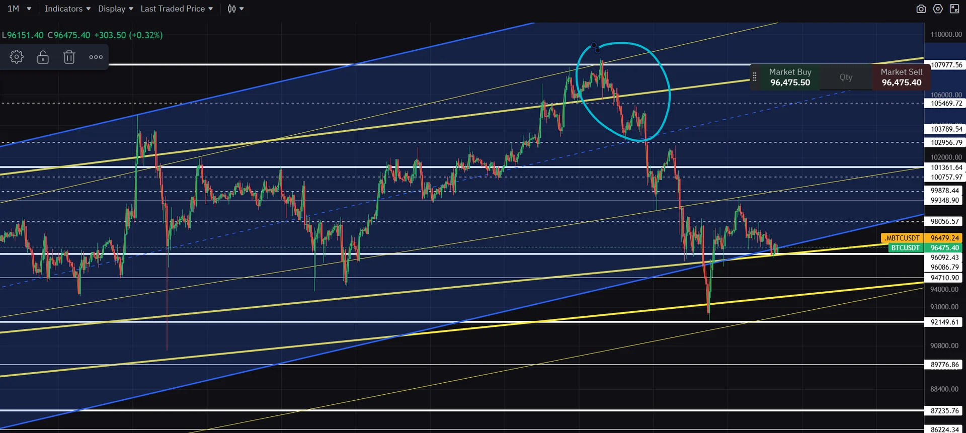 차트 상 1차 98k, 2차 96k, 3차 92k 정도까지 지지선이 있는 것을 확인 후