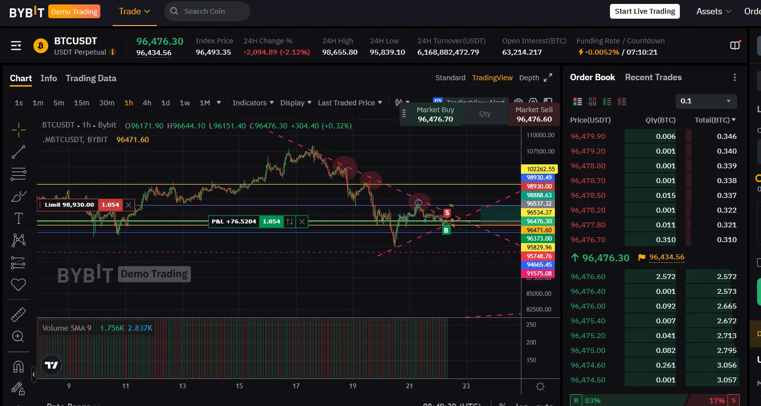 1일봉 과 4시간 차트를 그어봤는데 노란색 4시간 차트에서 지지와 저항 추세선이 그어져서 그 사이에 진입을 하였고 지금 노란색 추새선 사이에서 왔다갔다 하고 있습니다.
