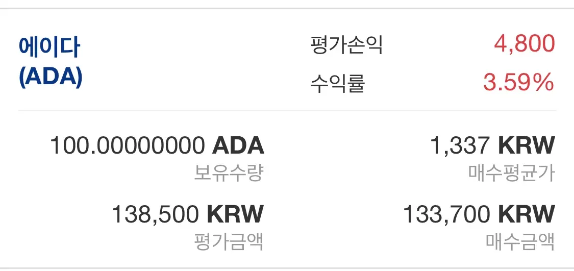 미션을 수행하기 위해서 22일 오후 2시 4분에 ADA 100개를 시장가 1337원에 매수하였습니다.