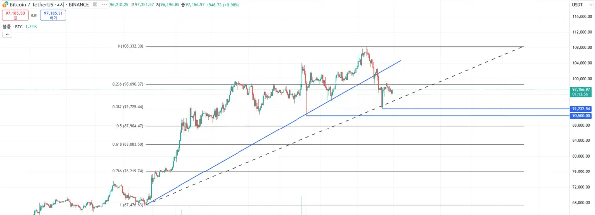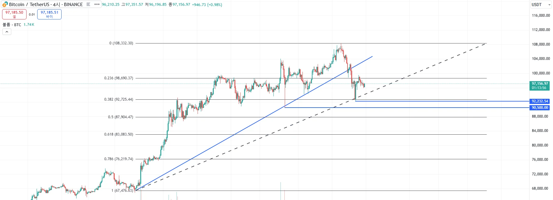 강의를 듣고 비트코인 4시간봉을 작도한 뒤에 이게 맞나 싶기도 하고 여기서 어디에 더 작도를 할 수 있는지 궁금하여 게시판도 구경하고 했지만 도저히 모르겠어서 과제 제출을 하게 되었습니다.