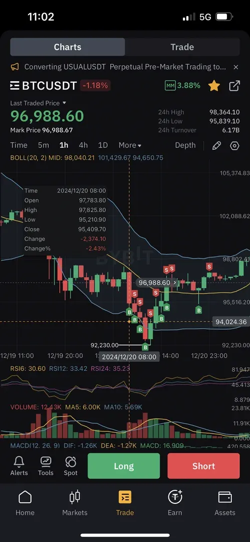 그리고 원래 스탑로스 지점은 95500이었는데 뭔가 저를 털고 올라갈것 같은 느낌에 조금 더 수정을 했는데 결과론적으로는 원래 원칙을 고수하는게 맞았던것 같고요
