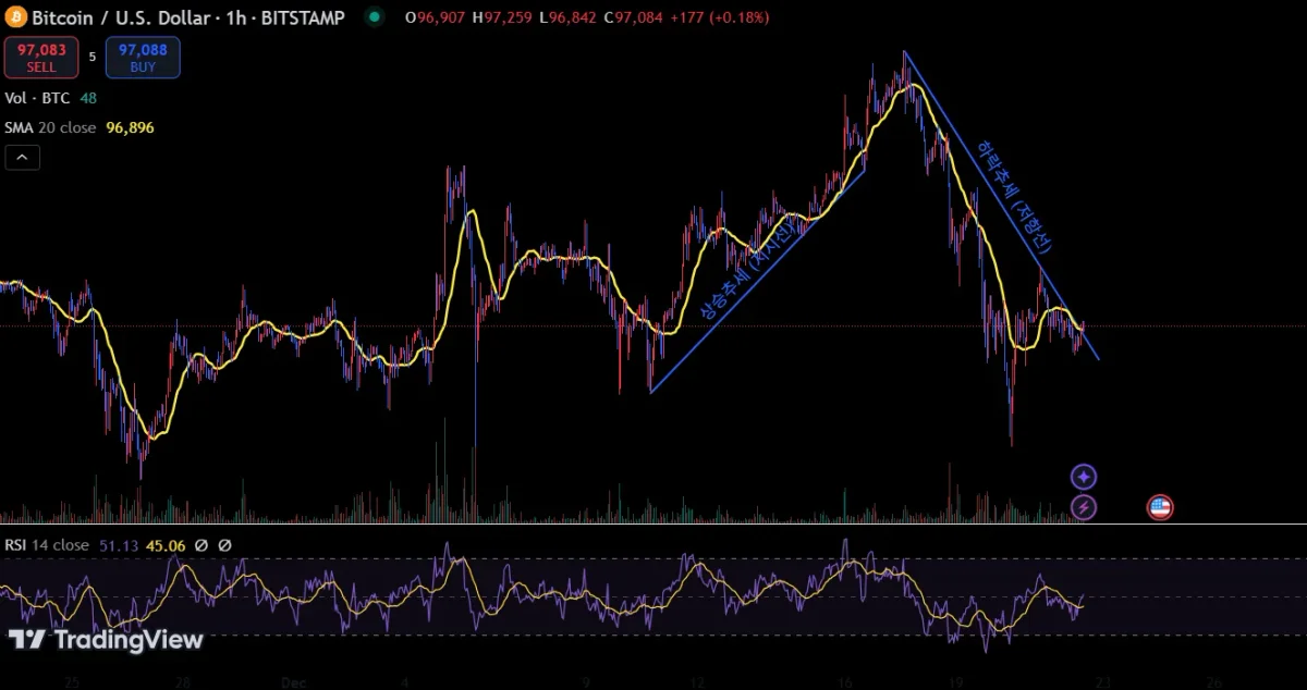 개인적으로 코인에 대해 알게 되면서 궁금했던 마이크로스트래티지 추종 etf 그래프 입니다. 제 생각엔 전체적인 그래프가 1시간봉에서 고점에서 떨이지고 네모 박스권에서 횡보하고 고점에서 저점 지지선 쪽으로 삼각수렴 후 박스권을 이탈 이후 다시 들어왔습니다. 이후 그래프가 우상향으로 발산할 것 같은데 제가 분석한 게 맞을까요?