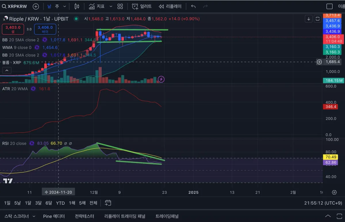 저도 이제 시작 단계여서 정말 소액으로만 투자를 시도해보고 있는데 리플 1일봉에서 RSI와 볼린저 밴드 및 거래량 등을 보고 일부 진입을 했습니다. 만약 리플이 현재의 박스권을 돌파하면서 거래량이 동반된다면(평균 거래량의 3~5배) 박스권 돌파 시점에서 추가 진입을 할 생각이고 1차 손절가는 터틀 트레이딩의 기법(20일 wma)에 따라 1N에 해당하는 3050원 정도로 생각해보고 있습니다! 덕분에 많이 배우고 있는데 앞으로도 잘 부탁드립니다. 감사합니다!