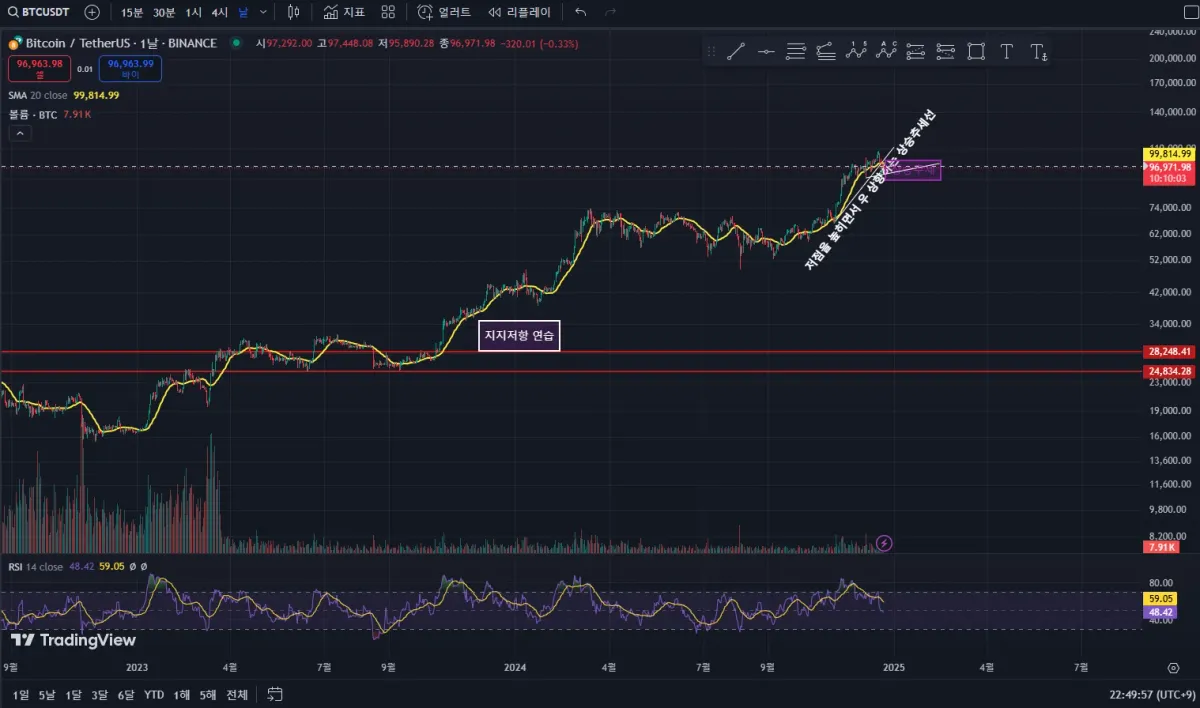 - 23년 4월~23년 11월 까지 횡보할 때의 기록을 가지고 지지와 저항 작도 연습을 해보았습니다!
