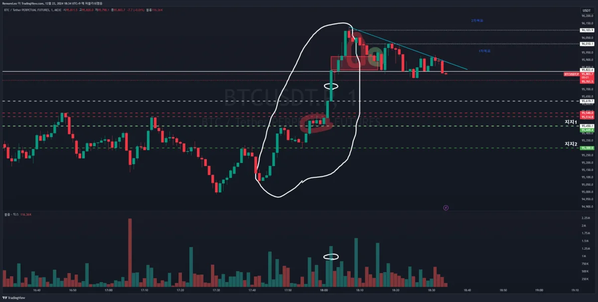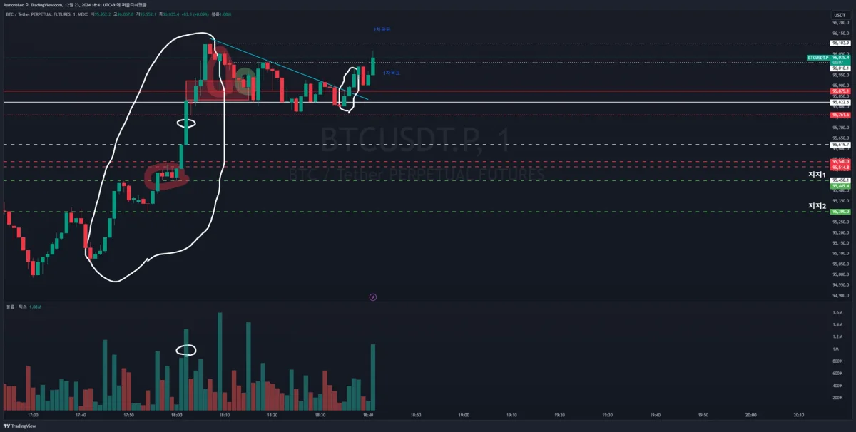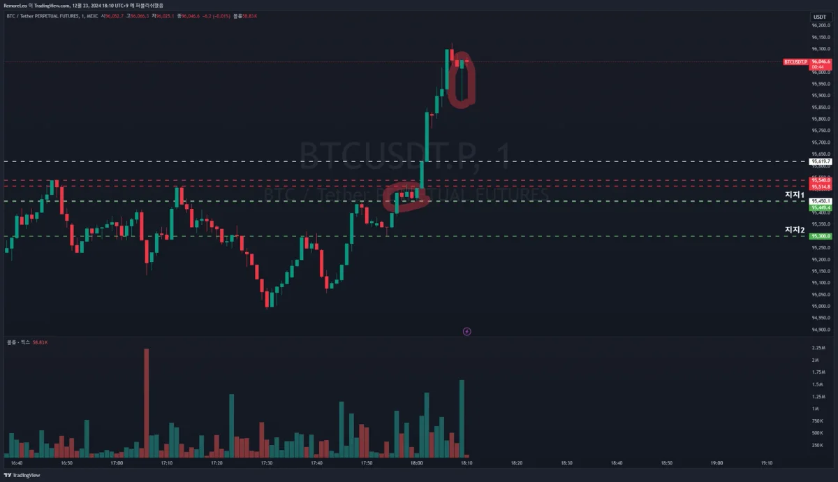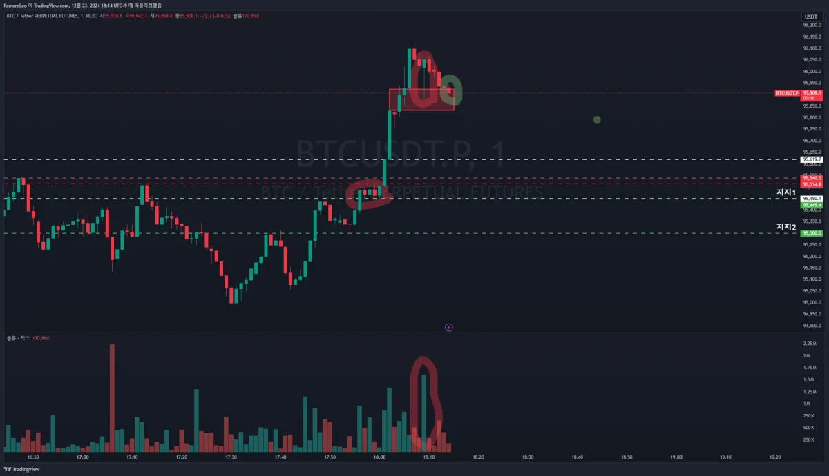 길게본다면 지지1 지지2 라인이지만 1분봉이기에 손절컷을 짧게 두고 진입하려고 합니다.