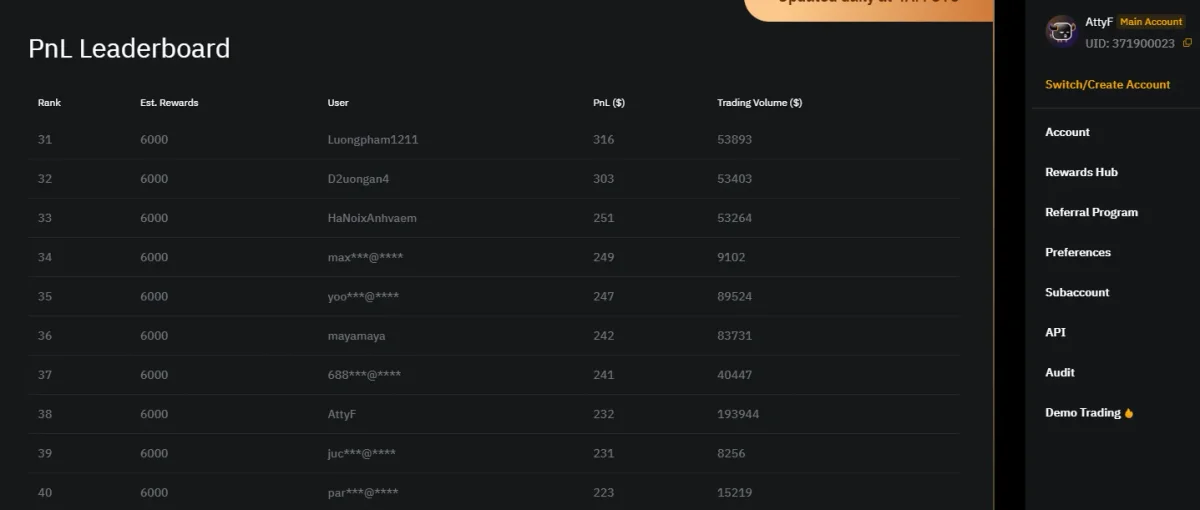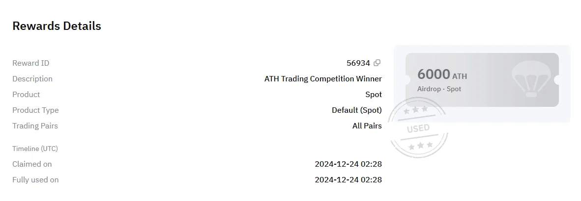 이후 대회코인 (ATH) 종료 후 $2500 달성 후 $2200달러 출금 했습니다.
