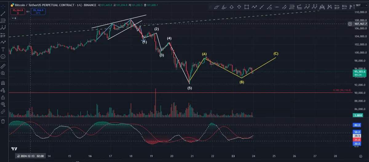 하락 추세 충격파동이후 조정abc가 나오는 중이라고 생각되어 작도해봤습니다.