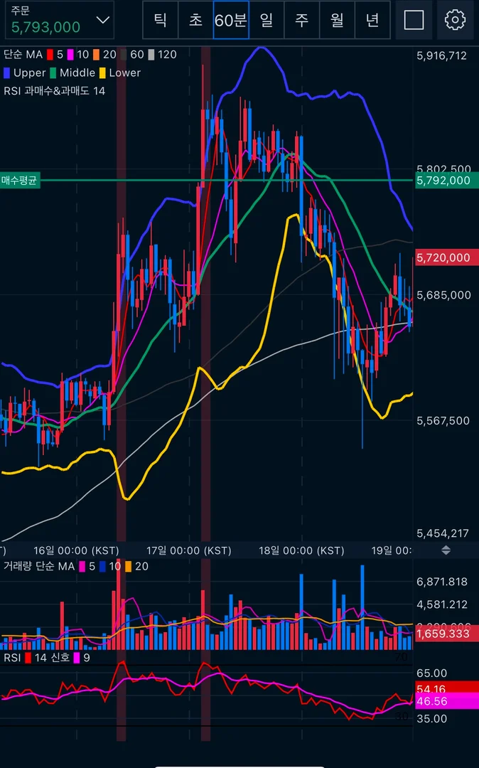 이더리움 차트입니다. 강의에서 볼린저 밴드를 배운 후로 신세계를 경험한 것 같아 이더리움 차트가 밴드를 양봉으로 뚫을때 샀습니다. 볼린저 밴드를 타며 오를것이라고 생각하고 단순히 매매를 했었고 현물을 일단 그냥 홀딩하려고 매수를 했습니다. 현물이다보니 떨어진 사실에 별로 감흥은 없지만 제 실수는 볼린저밴드를 뚫고 제 예상대로 흘렀을때 익절을 했어야하는데 소액이라 상관없겠지라는 생각으로 하지않았던 점이라고 생각합니다. 지금같은 하락장이 와서 복기를 해보니 조정은 반드시 올텐데 굳이 오른다는 기대가 많은 분위기에서 포모가 와서 굳이 현물 매수를 했던 점 또한 문제인것 같습니다.