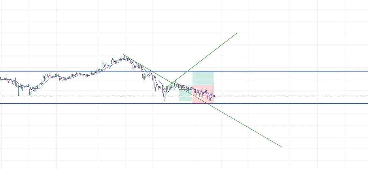 앞서 4터치 추세선이 등장했기 때문데 상승의 확률을 더 높게 봤으나, 상승 전 약간의 조정이 있을거라고 판단하여 단기 숏포지션에 진입했습니다.