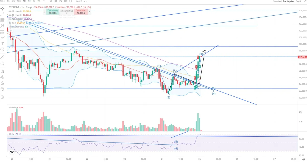 -가격 올라가고 rsi는 낮아지며 거래량도 낮아지기 때문에 하락 다이버전스가 일어날 가능성 존재 판단