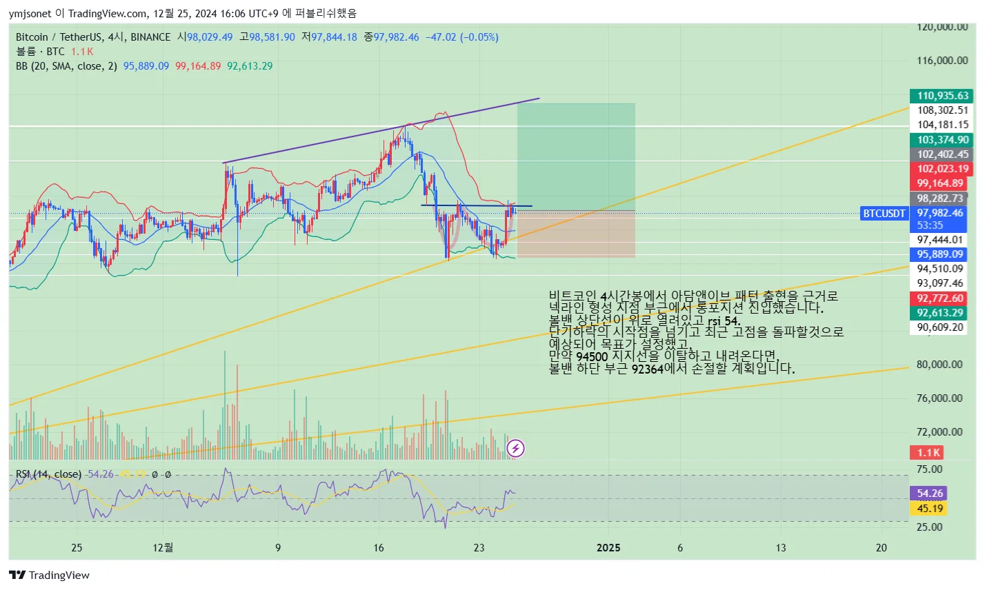 작성자92364에 손절 나갔습니다. 아담앤 이브 패턴은 상승장 중인 경우에는 그닥 유효하지 않은 것 같아요~ 충분한 근거를 가지고 진입해야겠습니다~