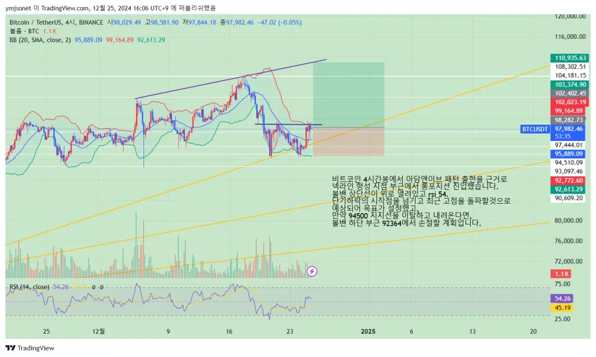 92364에 손절 나갔습니다. 아담앤 이브 패턴은 상승장 중인 경우에는 그닥 유효하지 않은 것 같아요~ 충분한 근거를 가지고 진입해야겠습니다~