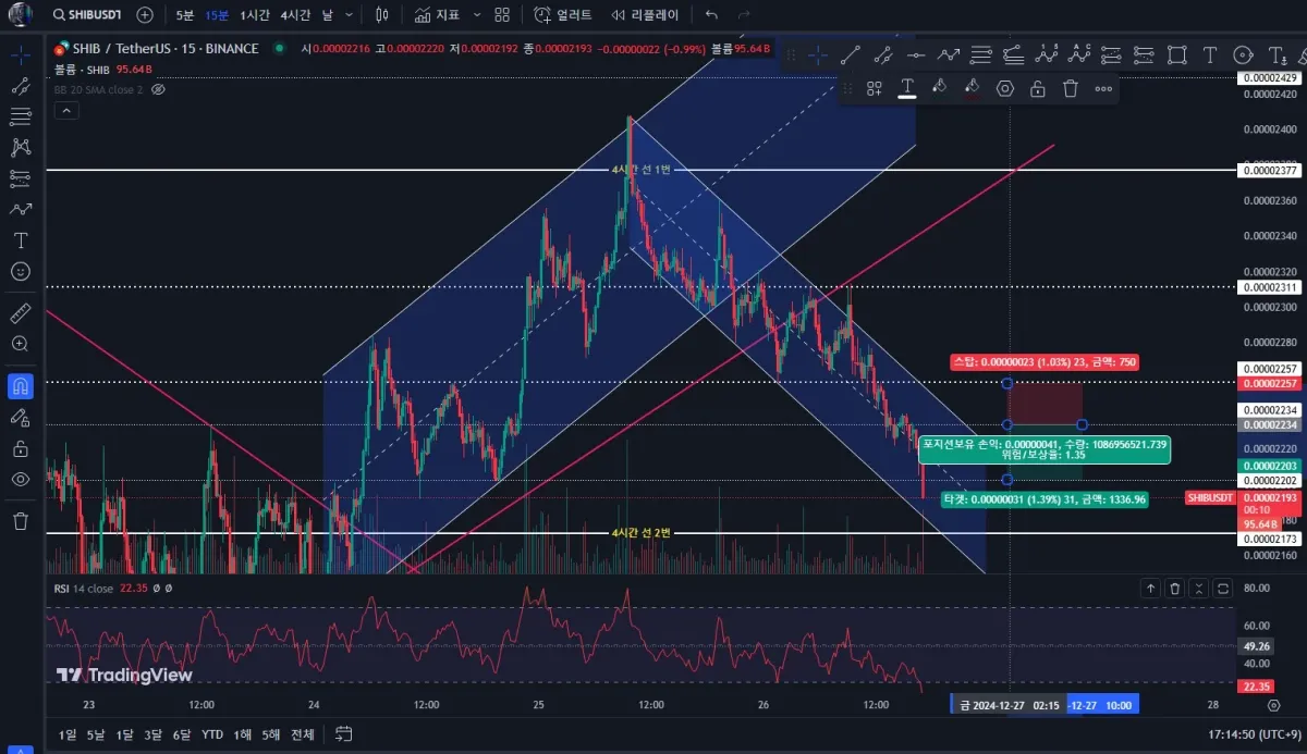 훈스 강사님의 채널 매매를 수강하고 쭉 봐왔던 시바이누 모의 매매를 해 보았습니다.