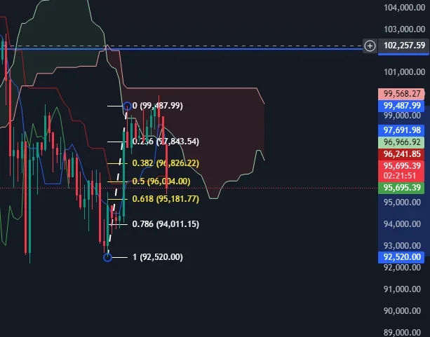 반등후 되돌림 0.5 정도까지 나올것 같아서 99.5k에서 20배 숏쳐서 수익 봤습니다.