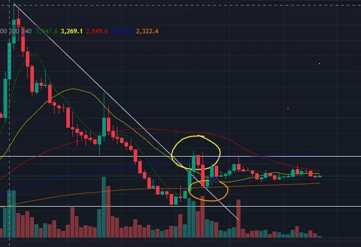 하락추세도 너무 강해보였지만 보조지표와 2311구간의 저항구간을 보면 이쯤에서 멈추고 다시 반등해주지 않을까라는 생각이 들었습니다. ( 2600이나 3138 선까지 반등후 하락)