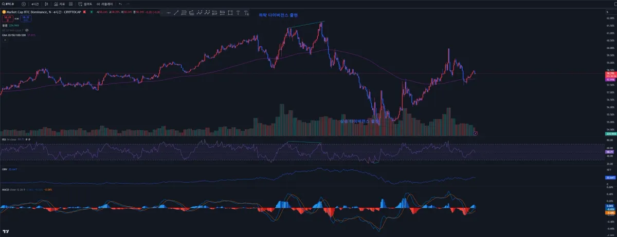 상승/하락 다이버전스도 한번 잡아봤습니다.