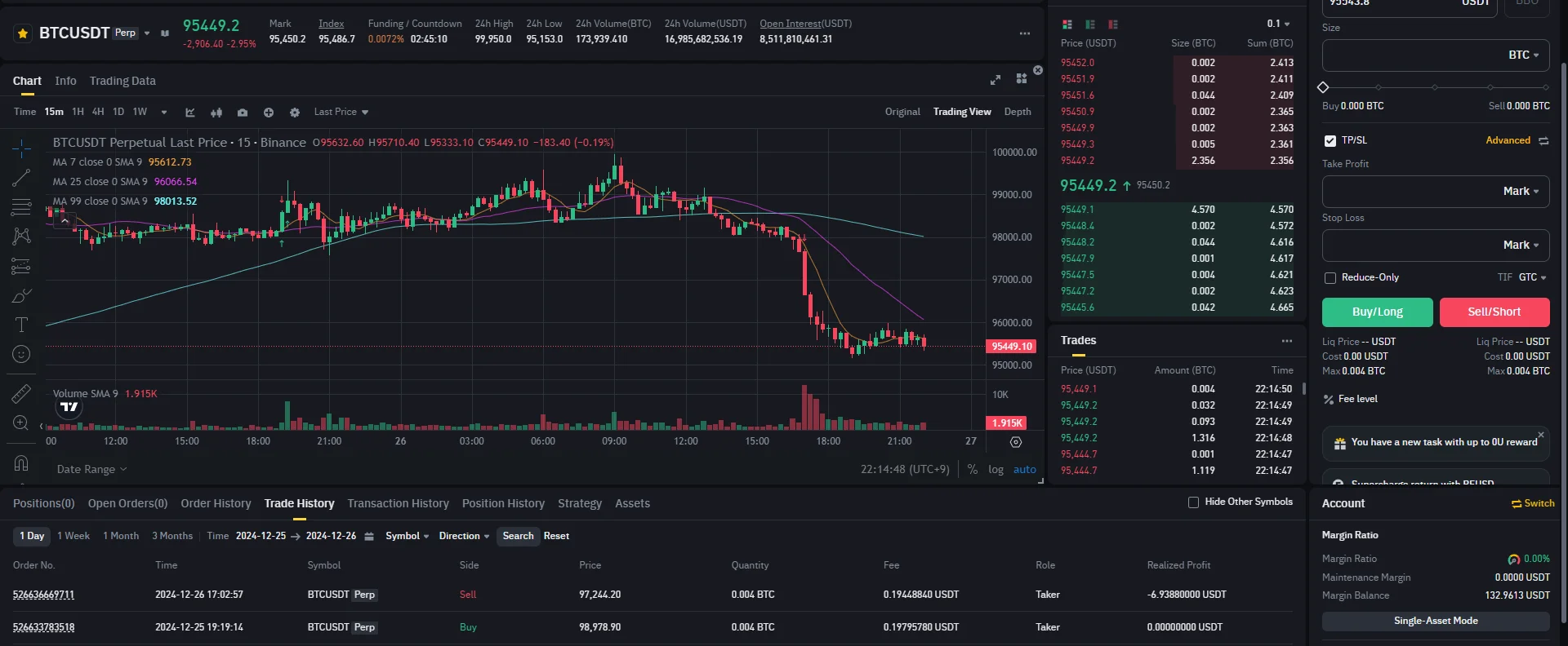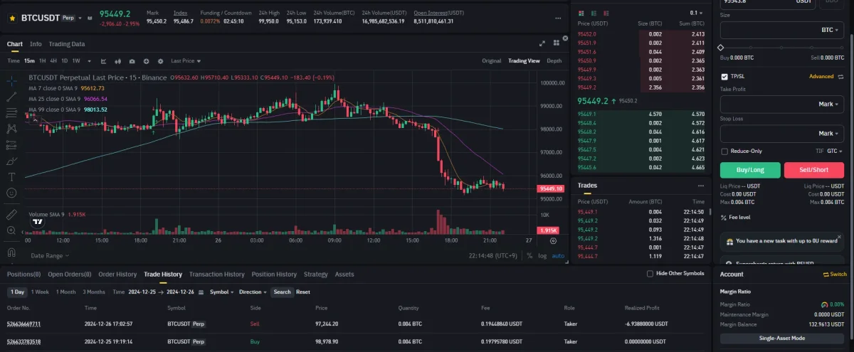 4. 손절 라인은 1시간 봉 저항선인 97,812.71 보다 조금 아래인 97,267.74로 잡음